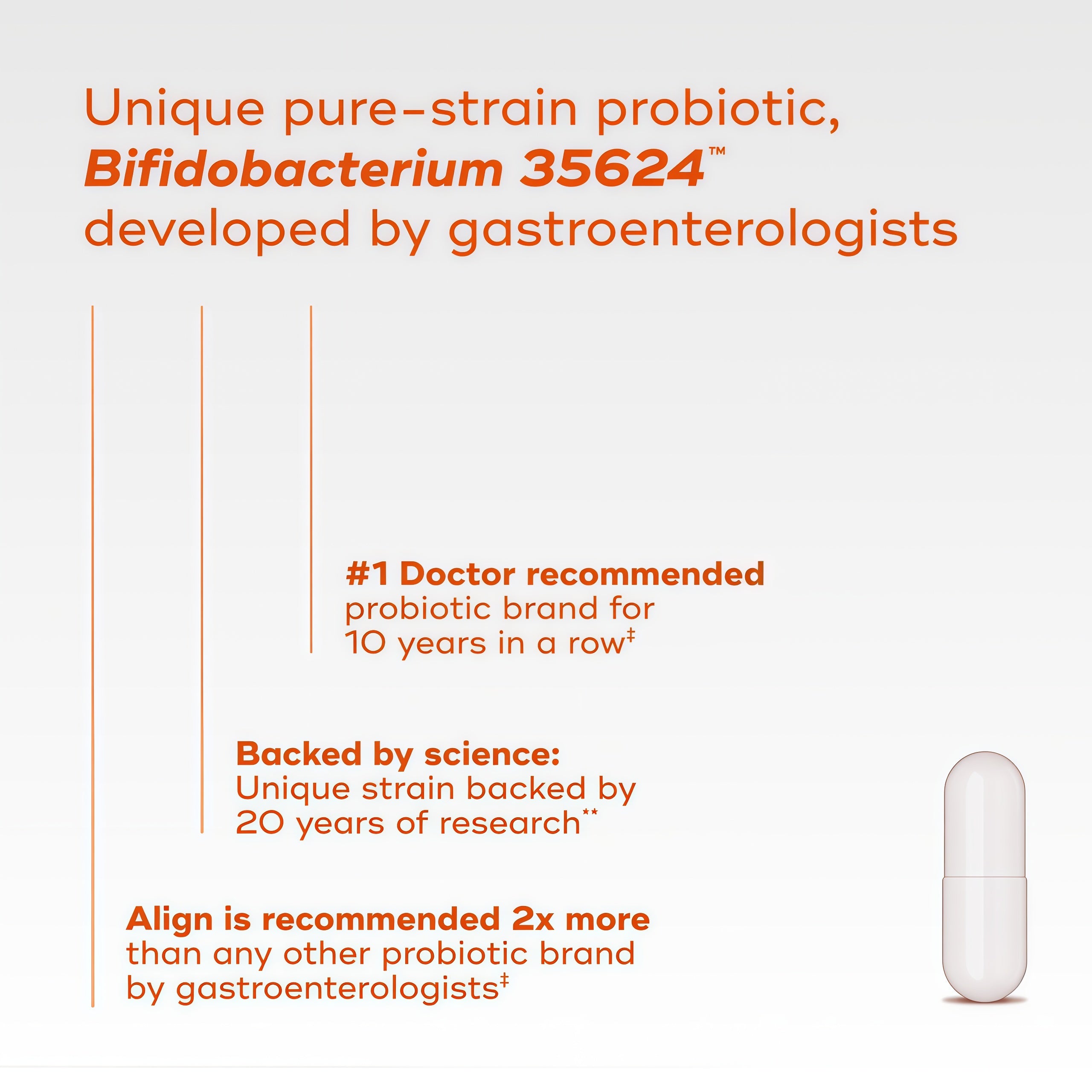 Align has been the #1 Doctor Recommended Probiotic Brand for the last 10 years and is backed by over 20 years of scientific research.